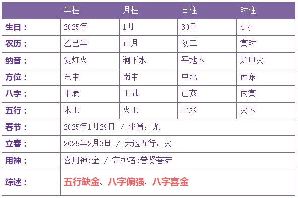 2025年1月30日4时诞生的宝宝