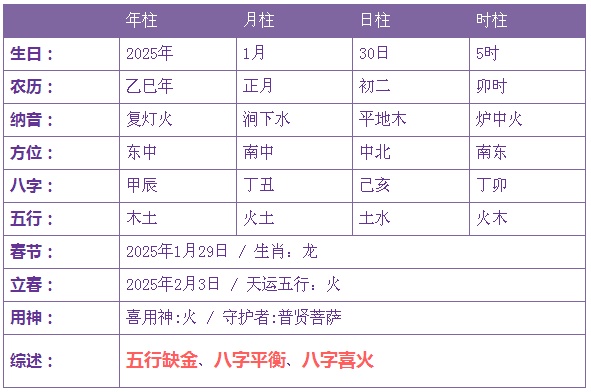 2025年1月30日5时诞生的宝宝