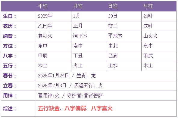 2025年1月30日20时诞生的宝宝