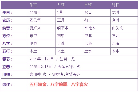 2025年1月30日22时诞生的宝宝