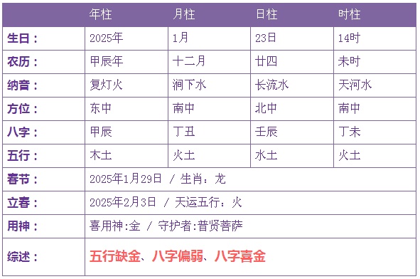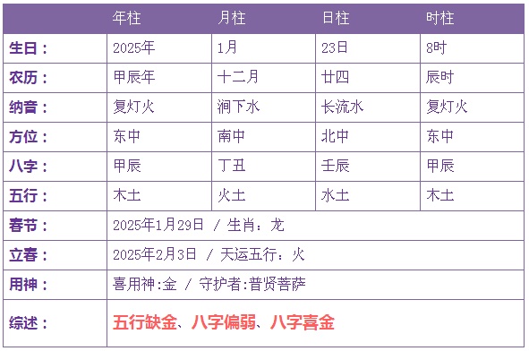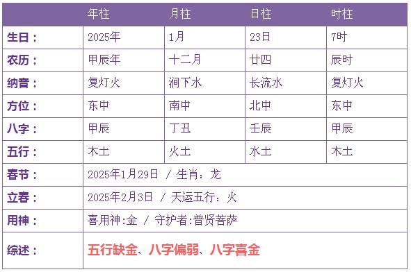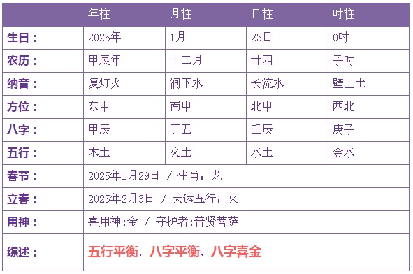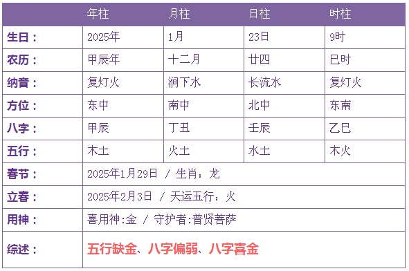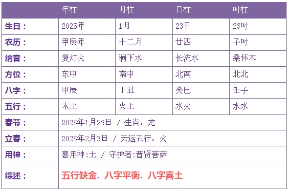 2025年1月23日2时诞生的宝宝五止没有缺
