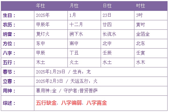 2025年1月23日3时诞生的宝宝五止缺金