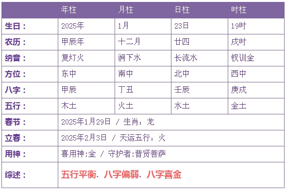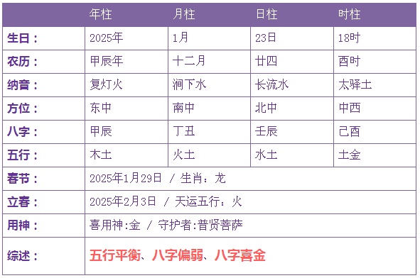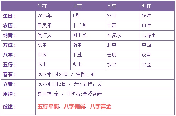 2025年1月23日生辰八字剖析: