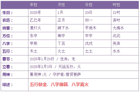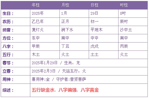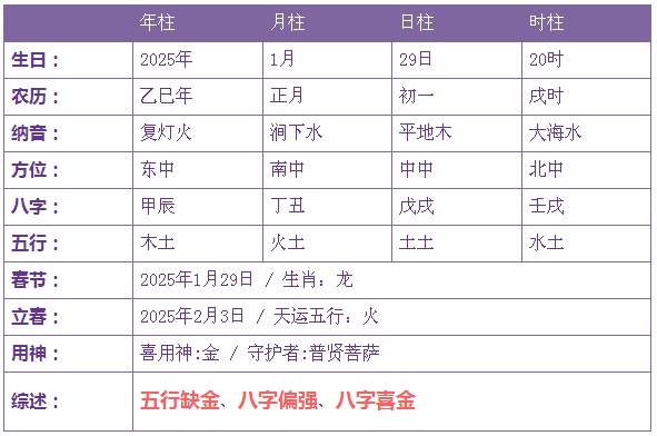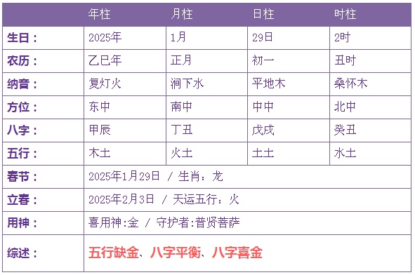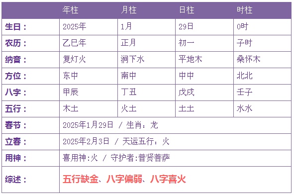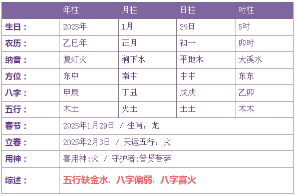 公历诞辰:2025年 1月 29日 礼拜三 火瓶座 (阳历)