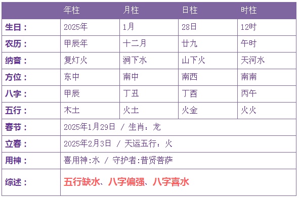 公历诞辰:2025年 1月 28日 礼拜两 火瓶座 (阳历)